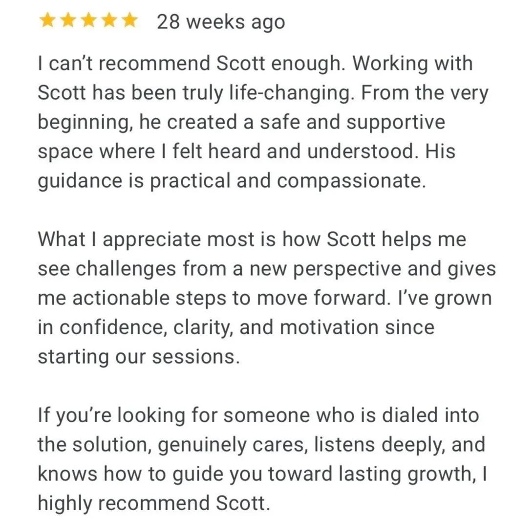 Scott works with a limited number of coaching clients at a time to ensure every person gets what they came for — not a program, but a transformation.
